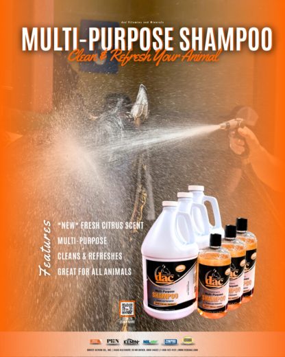 | Instructions | Wet animals coat thoroughly, or target problem areas. Work into a lather and massage shampoo into their coat from the head to the tail with hands or sponge. Rinse well with clean running water. |
