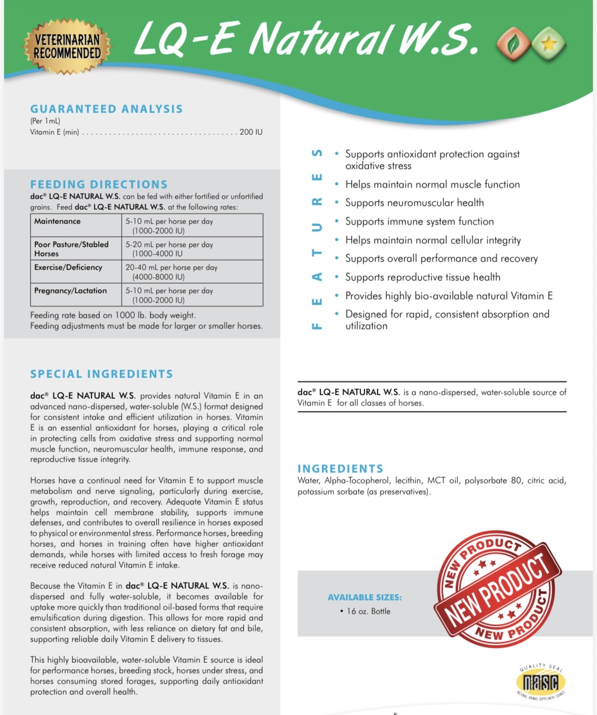 Natural Vitamin E- The biologically active form horses utilize most efficiently