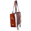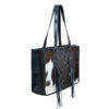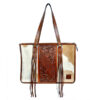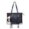 Briefcase: Tooled leather with hair on hide, fringed tassels, and concealed carry compartment. Black/White, Brown/White