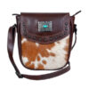 Rafter T Crossbody Bag with a Studded Flap, Brown Hair on Hide, and Turquoise Concho