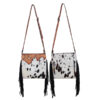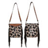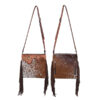 Crossbody Bag. Hair on Hide with Tooled leather scalloped top.