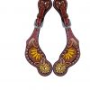 Ladies Spur Strap with Tooling, Hand Painted Sun Flower, TT Finish, SS Spots & Beaded Sunflower